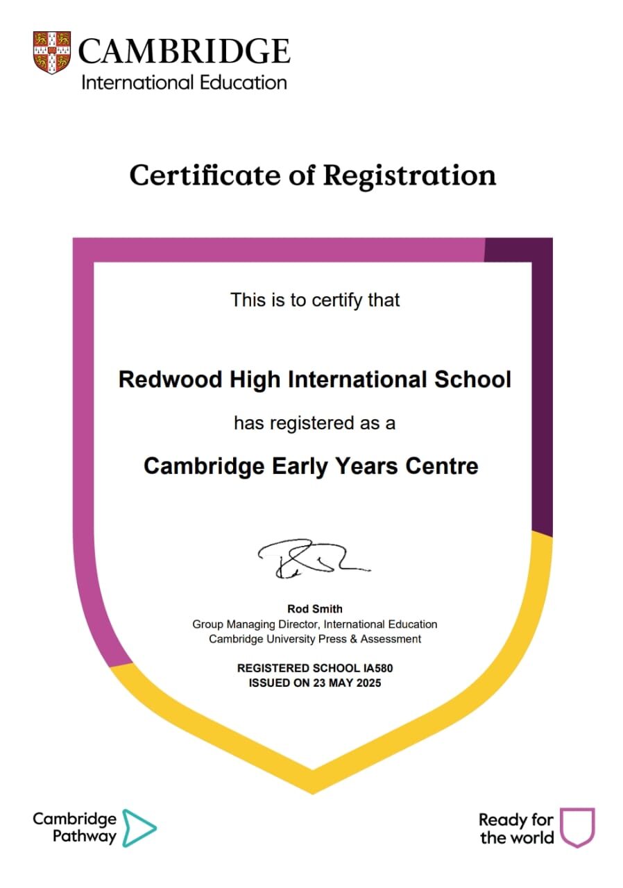 At Redwood High International School, we believe every child deserves the best foundation for lifelong learning. Our official registration with Cambridge International Education spans across all stages
